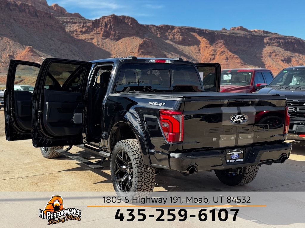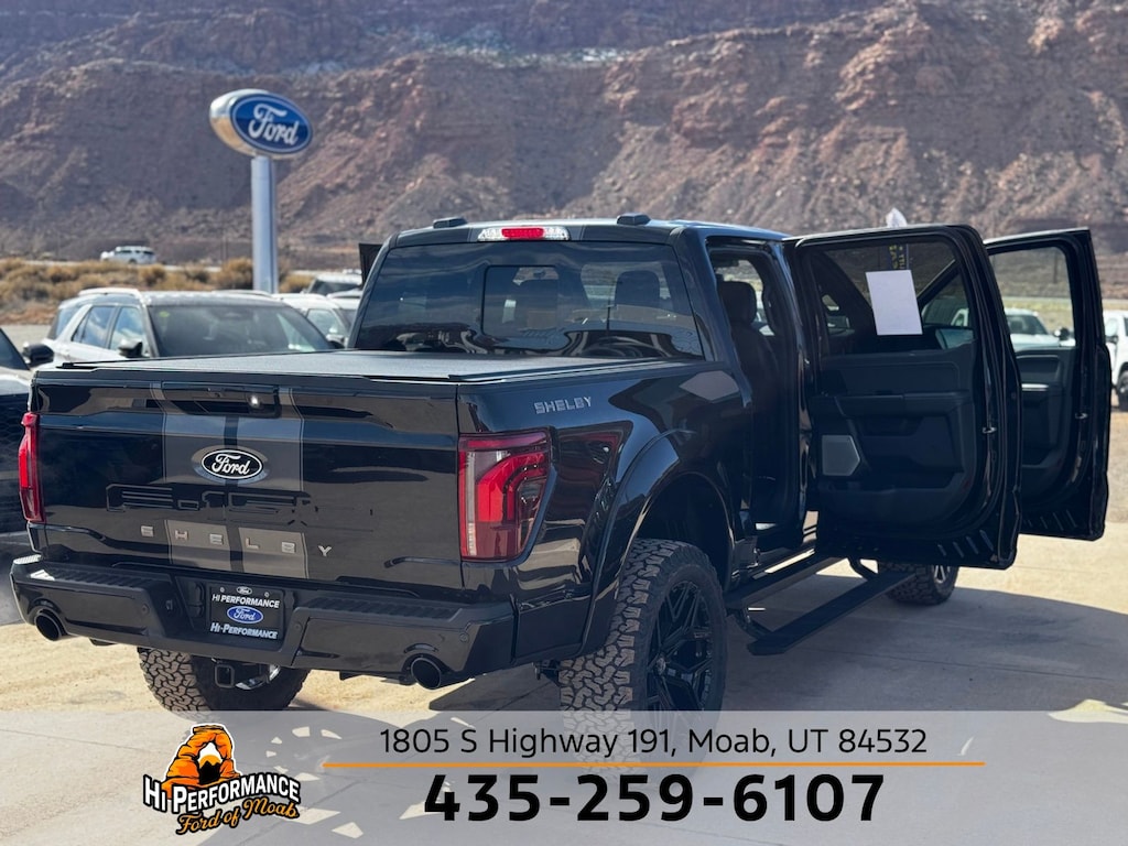 Black Metallic 2025 Ford F-150 SHELBY OFF-ROAD 4WD 10-Speed Automatic 5.0L V8 **SHELBY OFF-ROAD**, 4WD, ABS brakes, Alloy wheels, Compass, Electronic Stability Control, Front dual zone A/C, Heated door mirrors, Heated front seats, Illuminated entry, Low tire pressure warning, Remote keyless entry, Traction control.