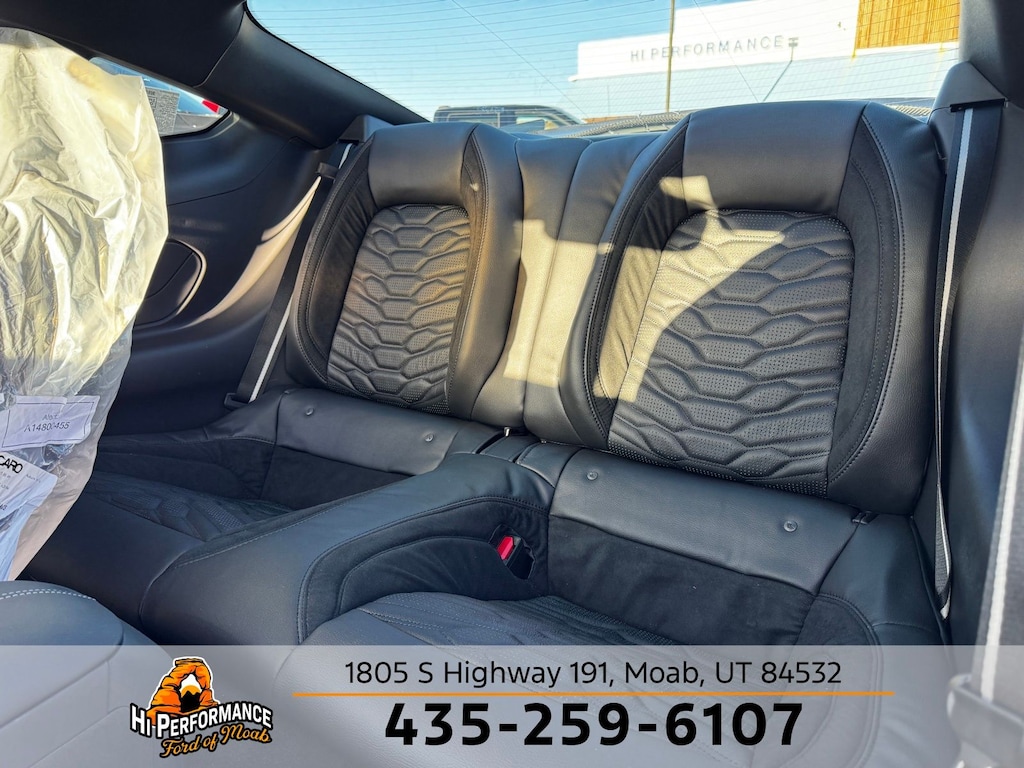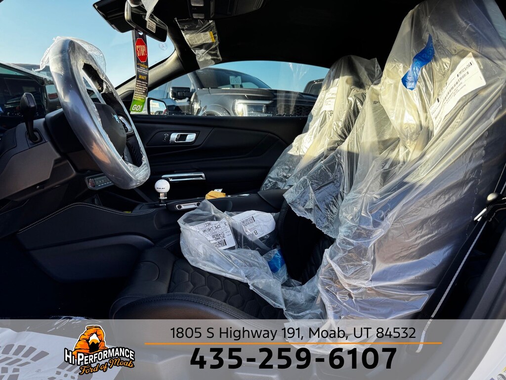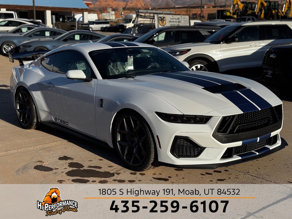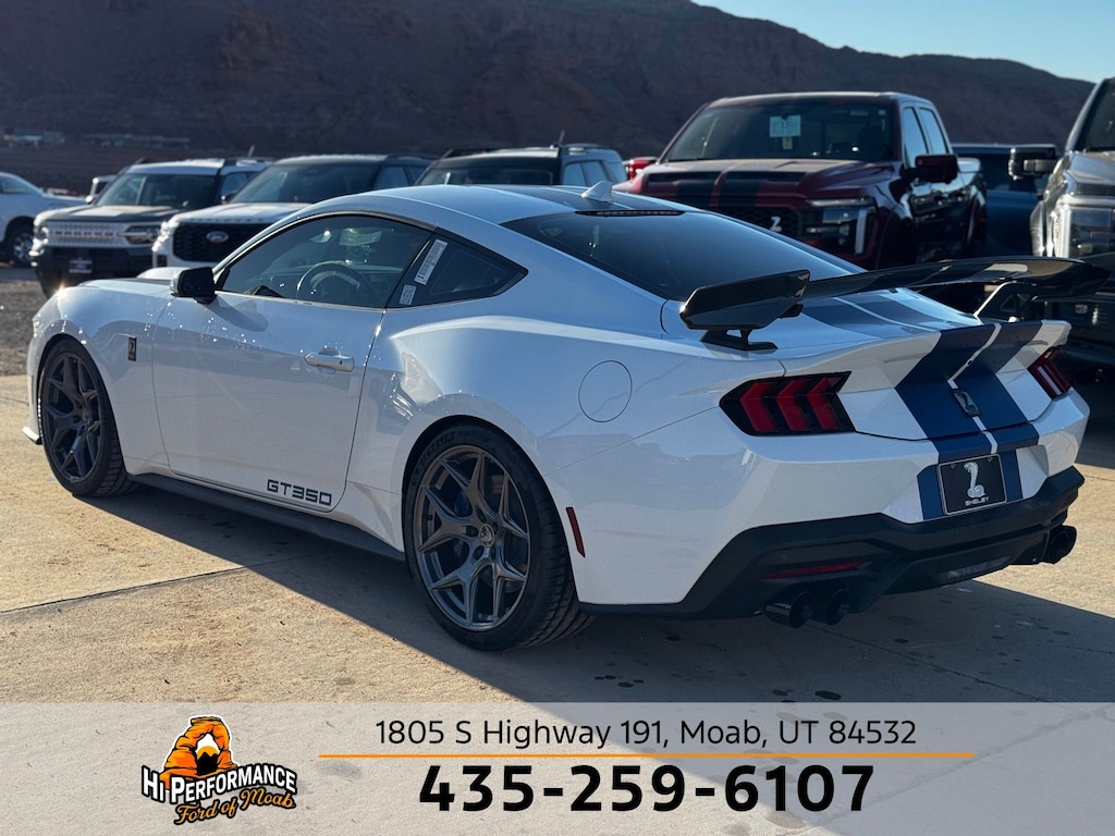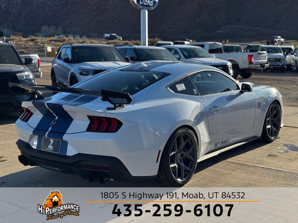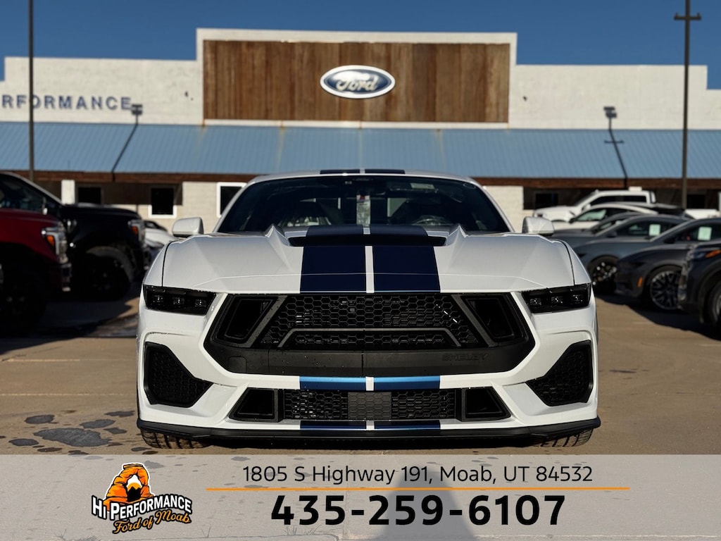Oxford White 2025 Ford Mustang SHELBY GT350 RWD 6-Speed Manual 5.0L V8 Ti-VCT ABS brakes, Alloy wheels, Compass, Electronic Stability Control, Front dual zone A/C, Illuminated entry, Low tire pressure warning, Remote keyless entry, Traction control.