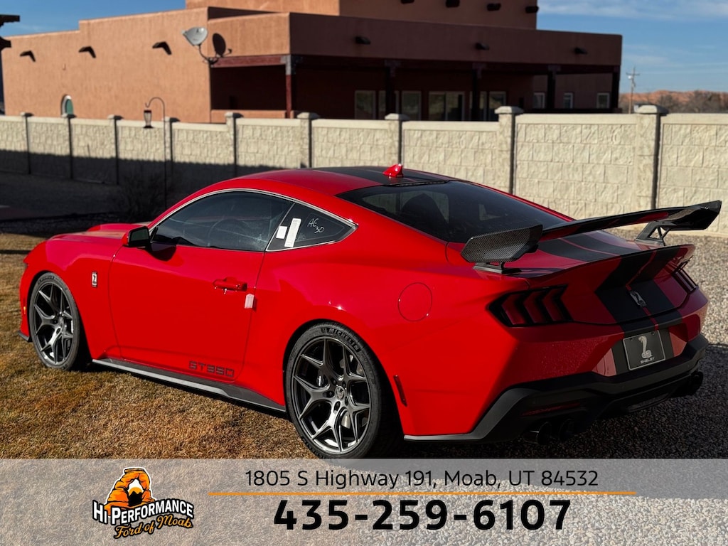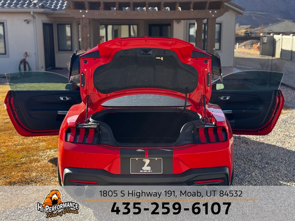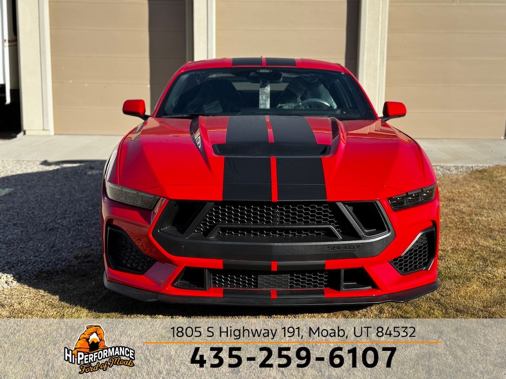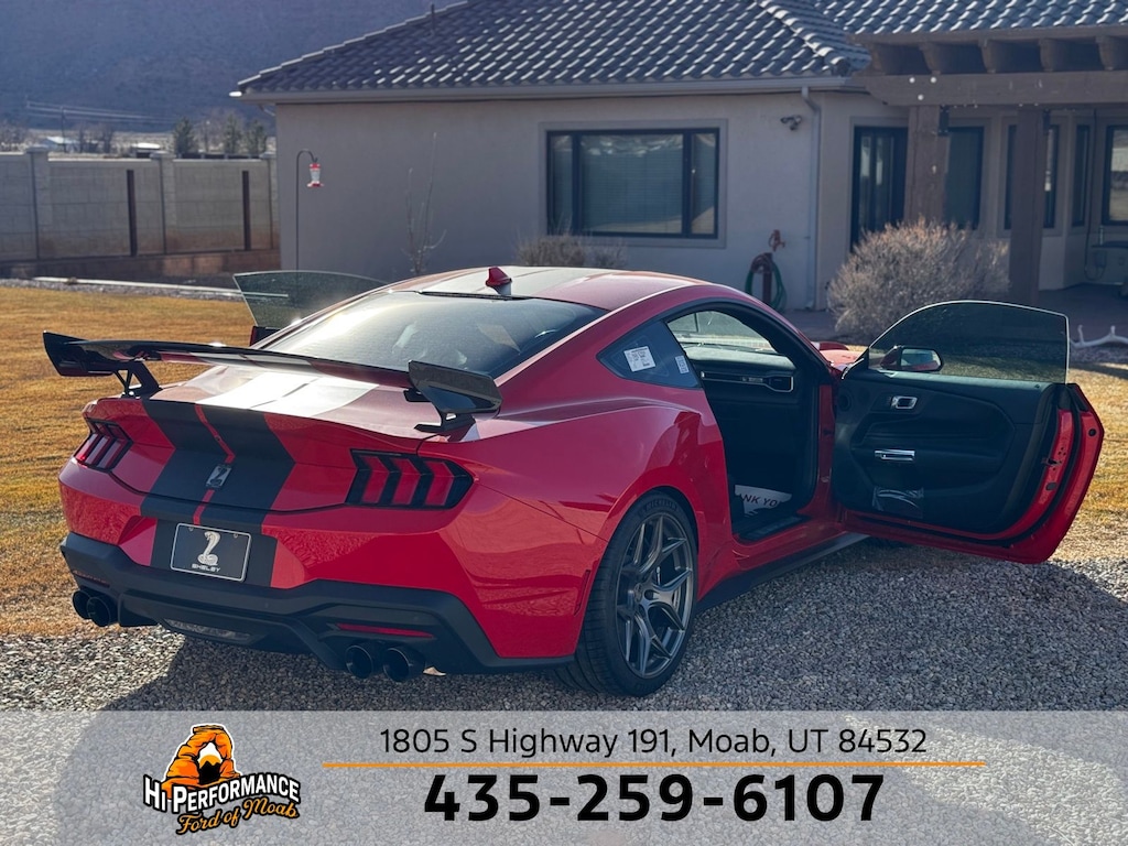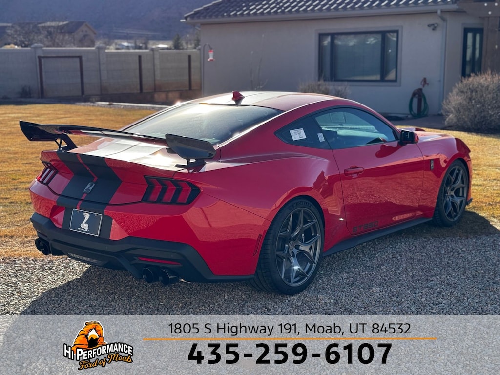 Race Red 2025 Ford Mustang SHELBY GT350 RWD 10-Speed Automatic 5.0L V8 Ti-VCT SHELBY GT350, ABS brakes, Alloy wheels, Compass, Electronic Stability Control, Front dual zone A/C, Illuminated entry, Low tire pressure warning, Remote keyless entry, Traction control.